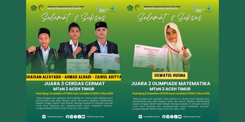 Dengan capaian ini, MTsN 2 Aceh Timur semakin menunjukkan eksistensinya sebagai madrasah berprestasi yang unggul dan siap bersaing dalam berbagai ajang akademik maupun non-akademik, serta terus memotivasi seluruh peserta didik untuk mengembangkan potensi terbaik mereka.