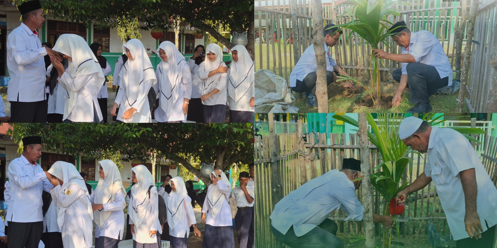 Di akhir upacara, rangkaian kegiatan dilanjutkan dengan salam-salaman antara Drs Idris, S PdI dengan peserta didik serta civitas madrasah sebagai bentuk perpisahan. Kegiatan kemudian ditutup dengan penanaman pohon kelapa hibrida di lingkungan madrasah sebagai simbol kenangan, keberlanjutan, dan harapan agar MTsN 2 Aceh Timur terus tumbuh dan memberi manfaat bagi generasi mendatang.